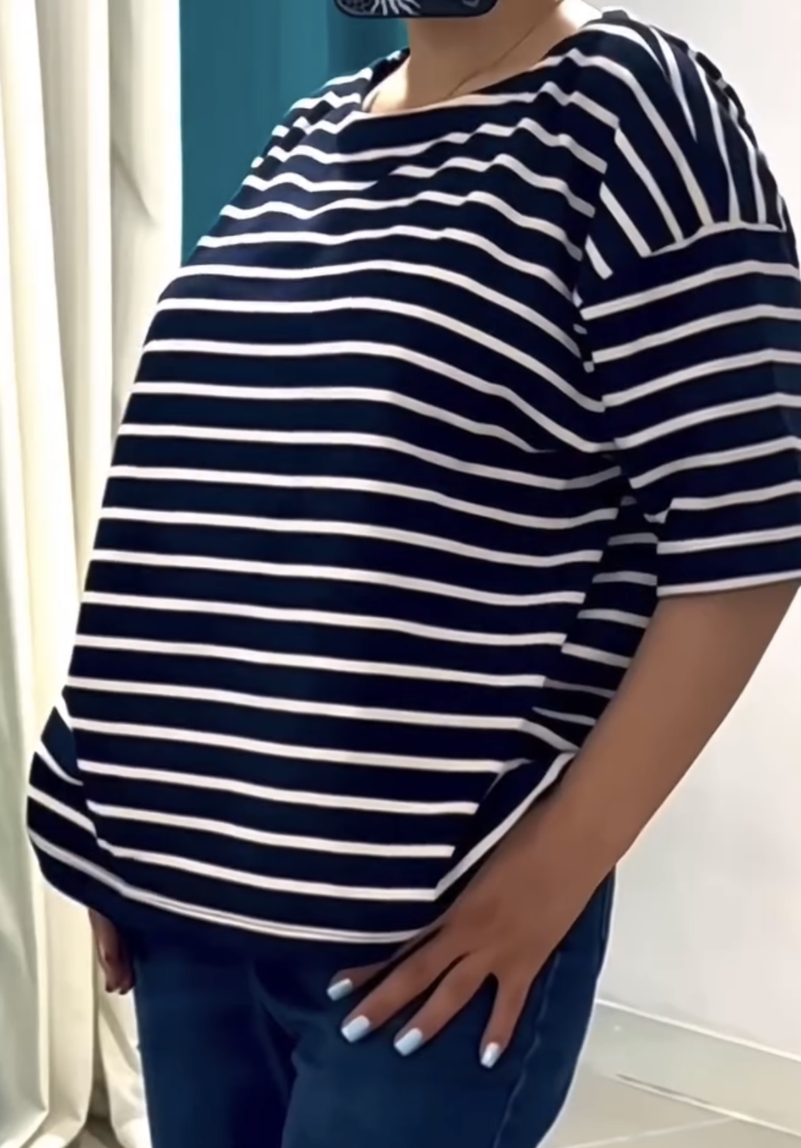 تیشرت زنانه نخی مدل راه راه آستین سه ربع