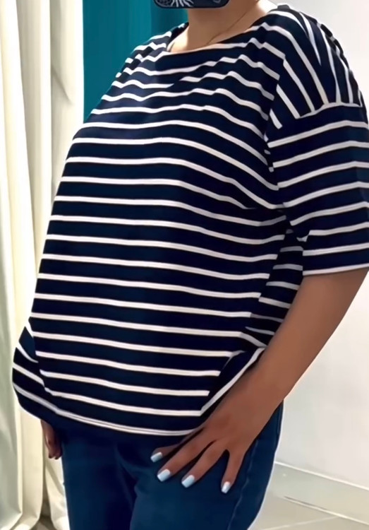 این تیشرت زنانه راه راه با طراحی کلاسیک و شیک، انتخابی ایدهآل برای استایلهای روزمره و نیمهرسمی است. آستین سه ربع آن، جلوهای متناسب با فصول خنک و معتدل ایجاد میکند و آزادی حرکت دستها را فراهم میکند.